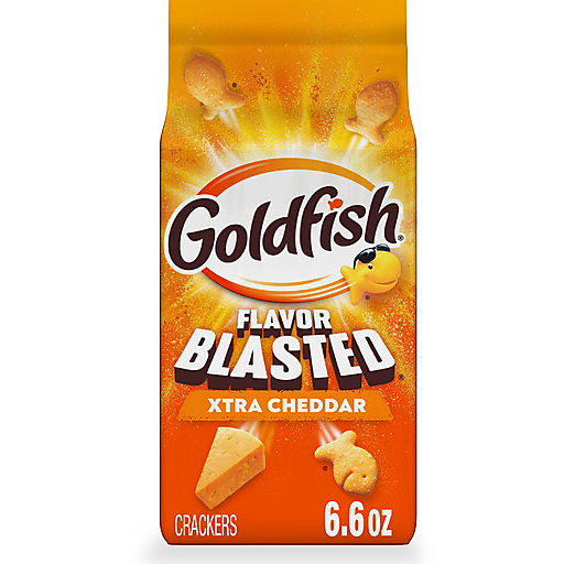 Nothing beats the cheesy blast of Goldfish® Flavor Blasted Xtra Cheddar Cheese Crackers! Every bite is Xtra delicious, with the perfect blend of crunch and bold cheese flavor that takes these cheddar crackers to the next level. Baked with real cheese and colors sourced from plants and playfully made in the iconic Goldfish shape, these crackers are all smiles. Bring extra Goldfish® Flavor Blasted Xtra Cheddar cheese crackers on car trips or picnics to share with friends and family. Each 6.6-ounce bag ensures that there's enough to go around, whenever snack time strikes.