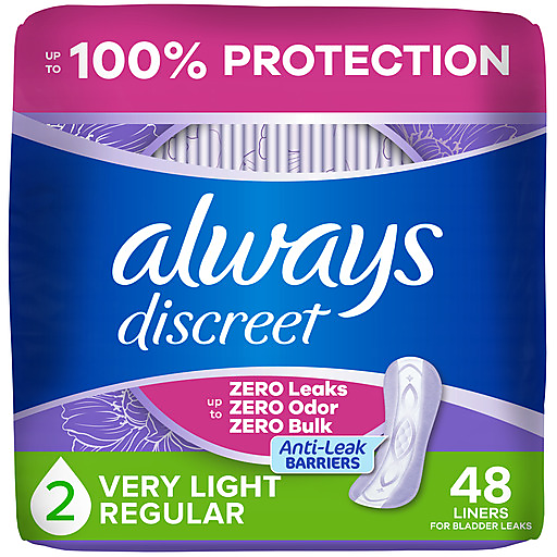 Always Discreet Always Discreet Incontinence Panty Liners, 2, Very Light, Regular, 48 Ct 48 ct
